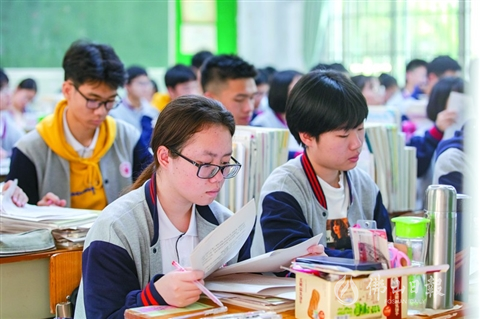 佛山市實驗中學(xué),學(xué)生在看試題。/佛山日報記者符詩賀攝