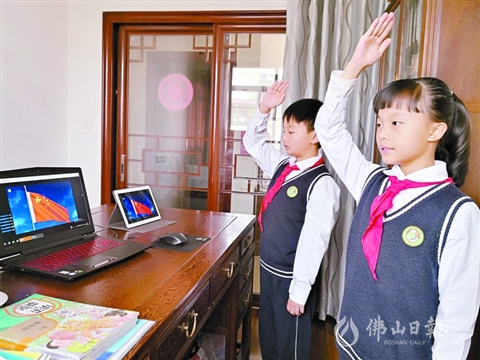 同一時間,滄中附小的龍鳳胎學生陳寧和陳宇,穿著干凈的校服,系著紅領巾,準時守候在電腦屏幕前,共同迎接“云開學”?!吧龂靸x式尤為莊嚴肅穆,我和孩子們一起感受線上升旗,感受特殊時期的愛國之情?!标悓?、陳宇父親陳暾輝表示。