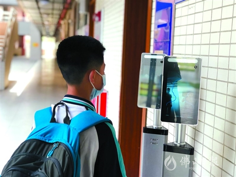 三水樂平中學(xué)(新校區(qū))內(nèi)設(shè)置智能測溫系統(tǒng),可動態(tài)掌握學(xué)生健康狀況。/學(xué)校供圖