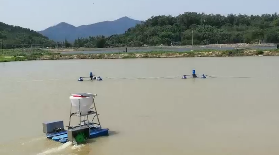 360°太陽能喂魚機在喂魚實驗中。圖為滄江中學(xué)提供
