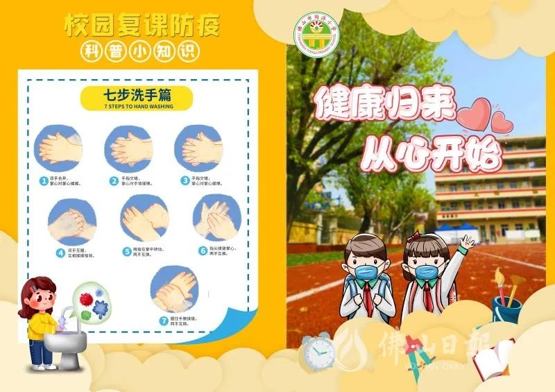 在元甲學(xué)校,學(xué)生測(cè)溫進(jìn)校門(mén)后還需用免洗手液洗手再進(jìn)校。(文圖/佛山日?qǐng)?bào)記者蘇宏堃 通訊員劉韻豐)為做好午餐的個(gè)人防護(hù),玫瑰小學(xué)建議學(xué)生DIY一個(gè)防護(hù)隔板。(文圖/佛山日?qǐng)?bào)記者 鄒婷婷 通訊員王瑞)