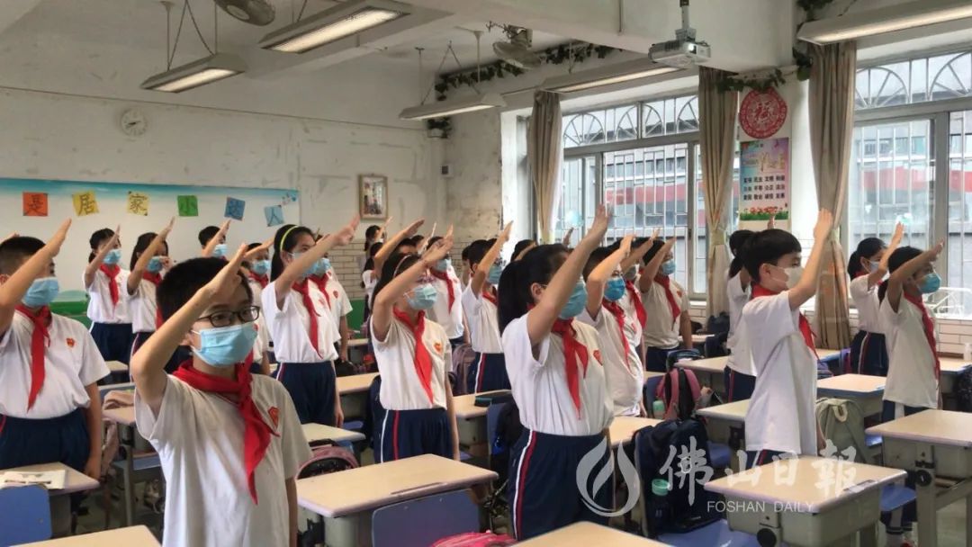 在三水區(qū)樂(lè)平鎮(zhèn)南邊小學(xué),五、六年級(jí)學(xué)生返校后,學(xué)校通過(guò)多媒體平臺(tái)舉行開(kāi)學(xué)升旗禮,學(xué)生在各教室參與。(文圖/佛山日?qǐng)?bào)記者何艷純 通訊員駱小紅)8時(shí)30分,元甲學(xué)校五、六年級(jí)師生在課室舉行了升旗儀式。一至四年級(jí)的老師則到操場(chǎng)參加升旗儀式。(文圖/佛山日?qǐng)?bào)記者蘇宏堃 通訊員劉韻豐)為減少聚集,三水區(qū)北江小學(xué)升旗儀式改在各班級(jí)教室舉行。(文圖/佛山日?qǐng)?bào)記者何艷純 通訊員瞿曉英)“復(fù)學(xué)第一課”開(kāi)課啦!桂江二小六年級(jí)學(xué)生到校后迅速開(kāi)展早讀。(文/佛山日?qǐng)?bào)記者 黎俏婷)