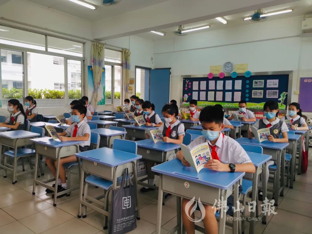 禪城區(qū)東鄱小學(xué)開(kāi)啟復(fù)學(xué)第一課“花開(kāi)疫散,歡迎回家”,老師們給孩子們準(zhǔn)備了返校禮物,隨后各班級(jí)還進(jìn)行了線上學(xué)習(xí)最美學(xué)生頒獎(jiǎng)儀式,同學(xué)們互相分享線上學(xué)習(xí)故事。(文/佛山日?qǐng)?bào)記者鄒婷婷 通訊員/余少莉)獅山實(shí)驗(yàn)學(xué)校五六年級(jí)學(xué)生返校后,每個(gè)班相繼召開(kāi)了主題班會(huì),讓學(xué)生熟悉在校期間的防控知識(shí)與注意事項(xiàng)。(文圖/佛山日?qǐng)?bào)記者蘇宏堃 通訊員肖堅(jiān))玫瑰小學(xué)《復(fù)學(xué)第一課》邀請(qǐng)到馳援湖北武漢醫(yī)護(hù)人員——佛山市第一人民醫(yī)院麻醉科葉麗護(hù)士長(zhǎng)(玫瑰小學(xué)學(xué)生家長(zhǎng))、佛山市第一人民醫(yī)院心血管內(nèi)科梅百?gòu)?qiáng)醫(yī)生為學(xué)生們講解防疫常識(shí)以及一線抗疫故事,并分享對(duì)玫瑰學(xué)子的勉勵(lì)和祝福。(文/佛山日?qǐng)?bào)記者鄒婷婷 圖/學(xué)校供圖)9時(shí)30分左右,大良實(shí)驗(yàn)學(xué)校六年級(jí)五班的學(xué)生們?cè)谡J(rèn)真閱讀《安全健康知識(shí)手冊(cè)》。(文/佛山日?qǐng)?bào)記者 郭東霓 圖/通訊員 鄭良)9時(shí),三水區(qū)實(shí)驗(yàn)小學(xué)通過(guò)釘釘平臺(tái)舉行復(fù)學(xué)第一課《“疫”過(guò)天晴,共同成長(zhǎng)》,各班學(xué)生在教室里收看。校方邀請(qǐng)了六(1)班家長(zhǎng)、佛山援助湖北醫(yī)療隊(duì)成員黃曉丹作客學(xué)校小星星電視臺(tái),與孩子們隔空分享三水醫(yī)護(hù)援鄂戰(zhàn)疫的真實(shí)故事。(文圖/佛山日?qǐng)?bào)記者何艷純 通訊員胡文英)