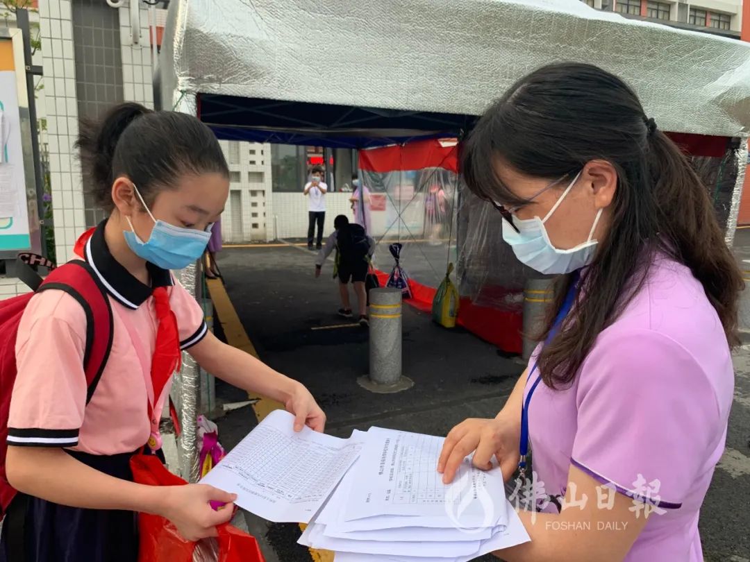 7時(shí),高明滄江中學(xué)附屬小學(xué)五六年級(jí)的學(xué)生有序返校。(文圖/佛山日?qǐng)?bào)記者 呂潤(rùn)致)7時(shí)15分起,西江新城第一小學(xué)門(mén)口,教師開(kāi)始向?qū)W生收回健康卡,隨后指引學(xué)生排隊(duì)進(jìn)校。 (文圖/佛山日?qǐng)?bào)記者 謝文駿)