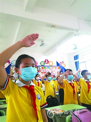 昨日,三水區(qū)五、六年級超過1.6萬名小學(xué)生返校復(fù)學(xué),沉寂已久的小學(xué)校園再次響起瑯瑯書聲。