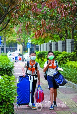 昨日早上8時(shí),佛山市第九小學(xué)五年級(jí)4班呂宏俊由爸爸開車送回學(xué)校。終于結(jié)束長(zhǎng)達(dá)近4個(gè)月的“超長(zhǎng)寒假”,呂宏俊高興不已,在快到校門時(shí),他驚喜地發(fā)現(xiàn)要好的同班同學(xué)賴楚文也到了校門——“嘿,好久不見!”興奮的呂宏俊還沒下車,就迫不及待地按下了車窗,高聲與老友打招呼。