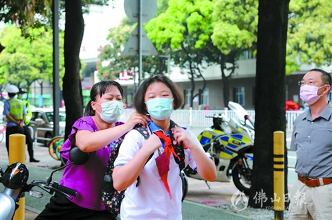 昨日,佛山九小門口,許久未見的同學(xué)互相打招呼。/圖片均為佛山日?qǐng)?bào)記者符詩賀攝