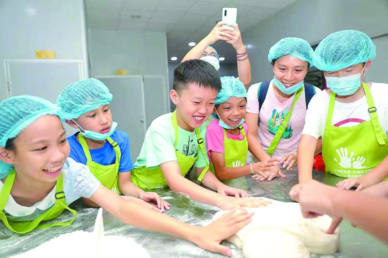 小朋友們參觀天園餅家,了解西樵大餅制作技藝。