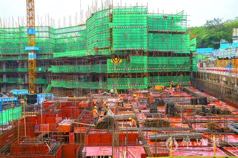 3月26日,禪醫(yī)健康城綜合體項目正如火如荼建設中。/佛山日報記者王澍攝