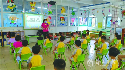高明區(qū)經(jīng)委幼兒園老師給孩子們上復(fù)學(xué)第一課。/幼兒園供圖
