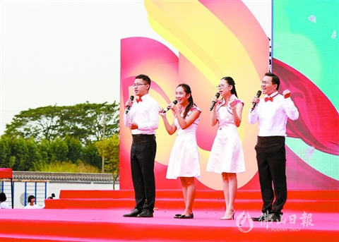 2017年佛山四中舉辦60周年校慶,教師上臺(tái)表演朗誦節(jié)目。/學(xué)校供圖