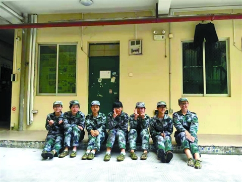 梁澤怡(左三)和室友在大一軍訓(xùn)時(shí)的宿舍樓前合影。