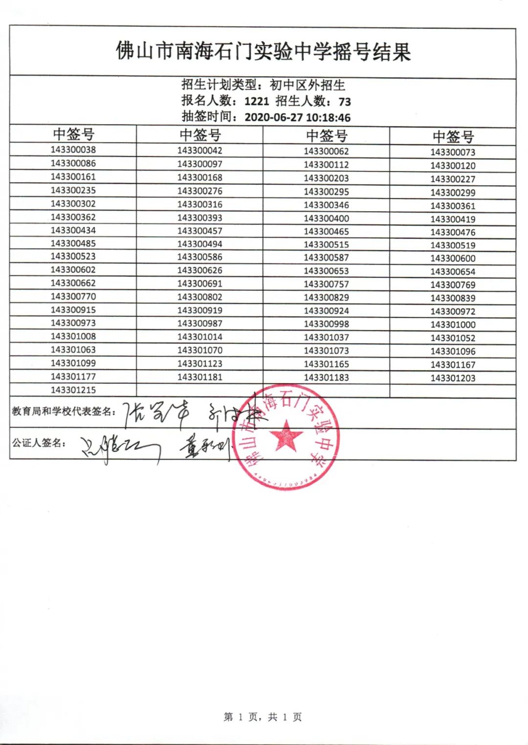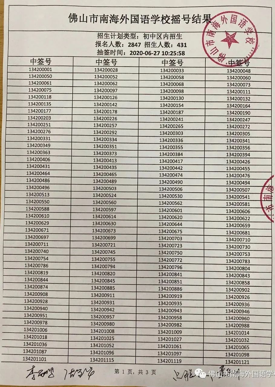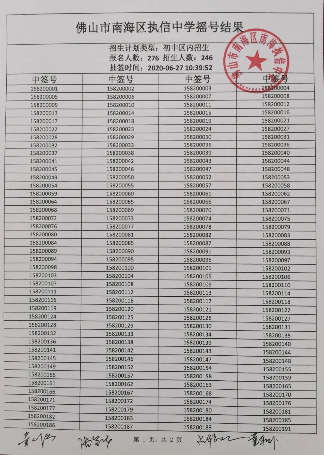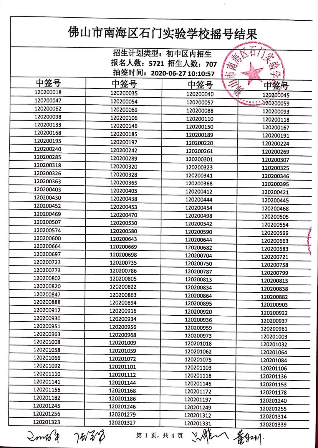 初中部區(qū)內(nèi)計劃搖號錄取中簽號為: