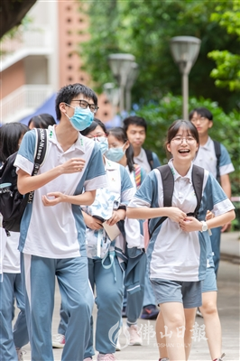 昨日,佛山二中考點(diǎn),考生們笑容滿面一身輕松走出考場。 /佛山日報(bào)記者符詩賀攝
