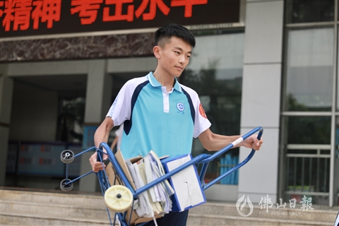 高考結(jié)束后,除了對高三考生們的祝福與歡送之外,高明一中高一、高二的學(xué)生們,自發(fā)當(dāng)起了志愿者,幫助師兄師姐們整理物品、搬運行李,高一學(xué)生徐乃鍵就是志愿者中的一員。