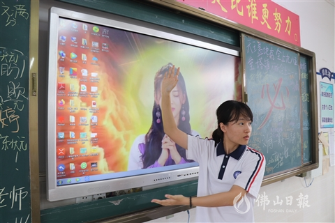 高明實驗中學(xué)高三(6)班學(xué)生潘珞怡,是班級里的娛樂“班長”。平日里,班里播放的娛樂視頻、歌曲都是由她一手操辦的,給班上帶來了許多歡樂,緩解了備考的壓力。