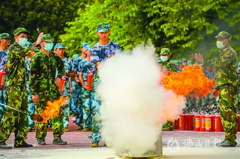 佛山科學(xué)技術(shù)學(xué)院舉辦“安全教育進(jìn)高校”安全宣傳活動(dòng),學(xué)生練習(xí)用滅火器滅火。/佛山日?qǐng)?bào)記者王澍攝