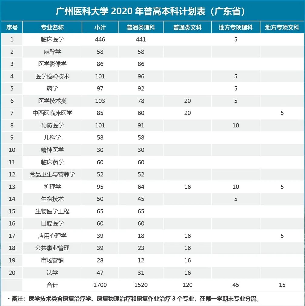 廣州醫(yī)科大學(xué)2020年普高本科計(jì)劃表
