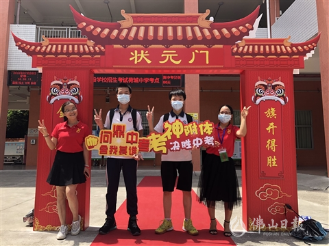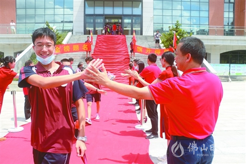 同樣,在廣東外語外貿(mào)大學(xué)附設(shè)佛山外國(guó)語學(xué)校,教師們身著紅色上衣一一列隊(duì),與考生擊掌鼓勵(lì),目送他們踏上赴考專車。“今年受疫情影響,給老師和孩子們都帶來較大挑戰(zhàn),但我們很有信心,優(yōu)秀的他們可以克服困難,考上心儀的高中。”該校物理教師高碧說。