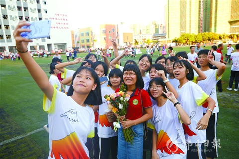 考生和家長要正視中考后情緒狀態(tài),圖為中考結(jié)束后,考生合影留念。/受訪者供圖