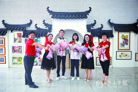 8月5日,滄江中學考生黎宇菲(右三)、李銘軒(左三)與老師合影。