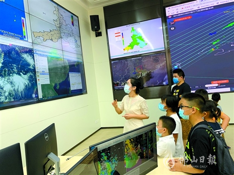 這是禪城區(qū)應(yīng)急管理局主辦的應(yīng)急安全小候鳥夏令營(第二期)活動現(xiàn)場。10戶家庭在佛山市氣象局內(nèi),近距離學(xué)習(xí)臺風(fēng)、暴雨、龍卷風(fēng)等氣象災(zāi)害的形成、氣象防災(zāi)減災(zāi)與氣象探測預(yù)報等相關(guān)知識。
