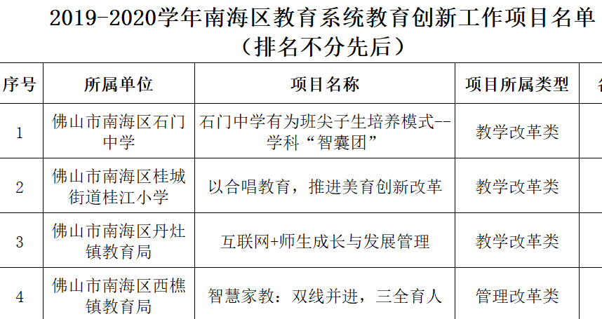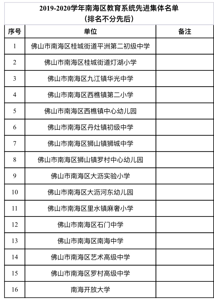 2019-2020學年南海區(qū)教育系統(tǒng)先進集體、個人和教育創(chuàng)新工作項目表彰名單