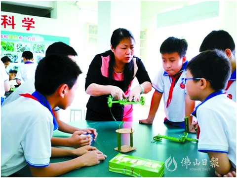 佛山九小教師陳小潔指導(dǎo)科技小組學(xué)生開(kāi)展科技創(chuàng)新項(xiàng)目研究。/學(xué)校供圖
