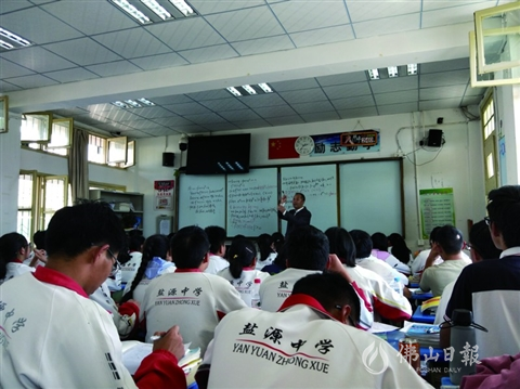 在四川省涼山州鹽源中學的高三(6)班,化學老師王漢彬話音剛落,班里的學生便大聲回答,課堂氛圍十分活躍。這種場景,放在佛山任何一個學校都不足為奇,但在涼山,卻顯得十分珍貴。