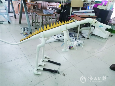 沈艷文用塑膠管搭建的玩具恐龍,插上數(shù)據(jù)卡能發(fā)出恐龍叫聲。