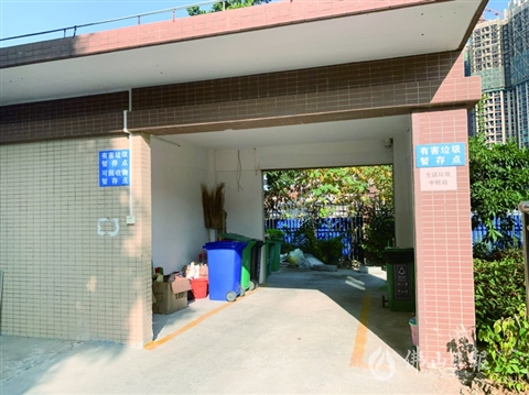 宜豐豪庭小區(qū)設(shè)置了可回收垃圾、有害垃圾暫存點(diǎn)。/佛山日?qǐng)?bào)記者謝文駿攝