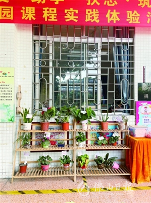 一班級(jí)門(mén)前的植物角。
