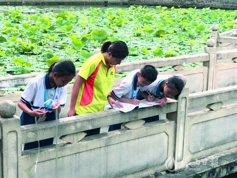 2019年,東鄱小學(xué)與公益組織源行綠社開(kāi)展“我是小塘主”綜合實(shí)踐活動(dòng),帶領(lǐng)學(xué)生到張槎轄區(qū)的36個(gè)池塘進(jìn)行巡塘。/學(xué)校供圖