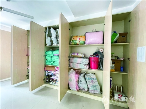 湖景社區(qū)應(yīng)急避難中心內(nèi)提供水電、照明、通信、廁所、住宿和物資儲(chǔ)備等。/佛山日報(bào)記者陳心如攝