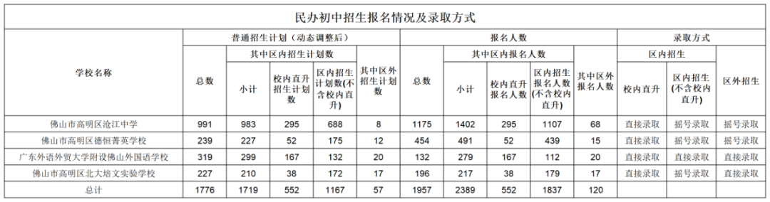 高明區(qū):所有學校均設區(qū)外招生計劃