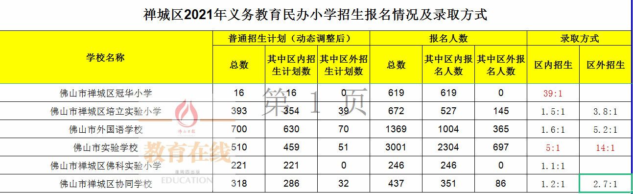 小學方面,報名較為熱門的學校為冠華學校以及佛實。其中,禪城區(qū)冠華學校去年未對外招生,今年對外招生16人,區(qū)內報錄比達39:1,成為禪城內最難搖中的民辦小學;佛山實驗學校區(qū)內報錄比為5:1,區(qū)外報錄比為14:1;禪城區(qū)協(xié)同學校今年首年恢復招生,區(qū)內報錄比為1.2:1,區(qū)外報錄比為2.7:1。