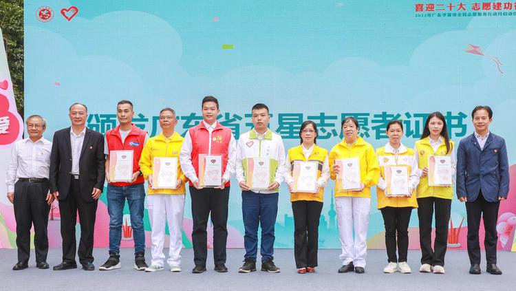 廣東省五星志愿者與頒獎(jiǎng)嘉賓合影。/佛山日?qǐng)?bào)記者周春攝