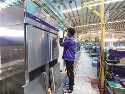 得益于市區(qū)兩級援企穩(wěn)崗,今年一季度,星星制冷實現(xiàn)良好開局。圖為星星制冷生產(chǎn)車間。