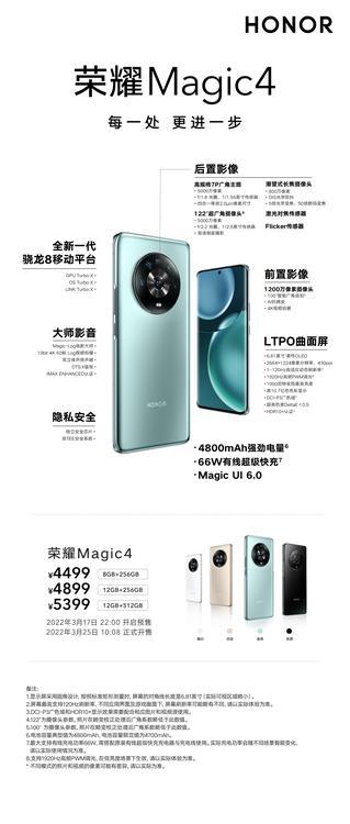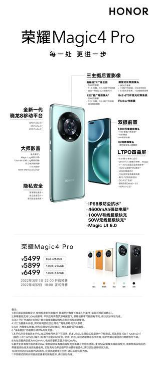 每一處,更進(jìn)一步的榮耀Magic4 4499元起,榮耀Magic4 Pro 5499元起,榮耀Magic4 至臻版7999元。