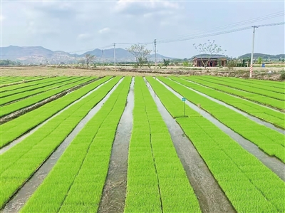 佛山日報訊 記者謝文駿報道:連日來,在高明區(qū)明城鎮(zhèn)萬畝稻田園區(qū)稻田育種棚內(nèi),鋪在地面的秧盤長出綠油油的稻苗。棚外耕地上,耙地機(jī)正在碎土平地。再過幾天,待耕地全部翻耙平整完畢,園區(qū)將安排統(tǒng)一插秧,種下今年第一批新品早造水稻種苗,并與華為公司實施5G智慧農(nóng)田項目。