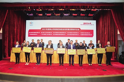 在南海區(qū)2022年企業(yè)家大會上,一批制造業(yè)高質(zhì)量發(fā)展標(biāo)桿企業(yè)獲頒牌匾。/通訊員供圖