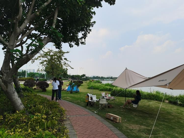 位于佛山大堤禪城轄區(qū)碧道的半月島濕地公園吸引了不少市民前往露營野餐。圖/佛山日報記者談飛洋