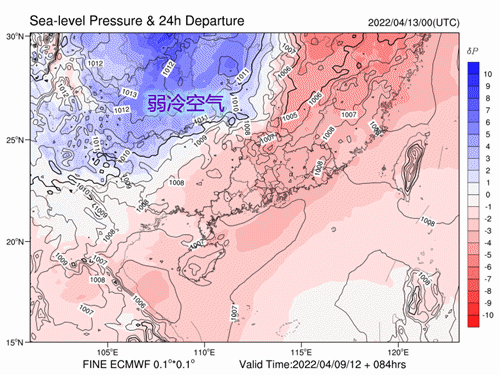經(jīng)過長途跋涉和能量“消耗”,該股冷空氣將以弱冷空氣級別入粵,給我省帶來降雨降溫。廣東省氣象臺4月10日預(yù)報,4月11日至12日我省維持晴朗干燥,晝夜溫差大,早晨有輕霧。4月13日受北方弱冷空氣南下影響,我省有中(雷)雨、局部大雨到暴雨降水過程,雷雨時局地伴有6~8級短時大風(fēng),省內(nèi)大部氣溫小幅下降。