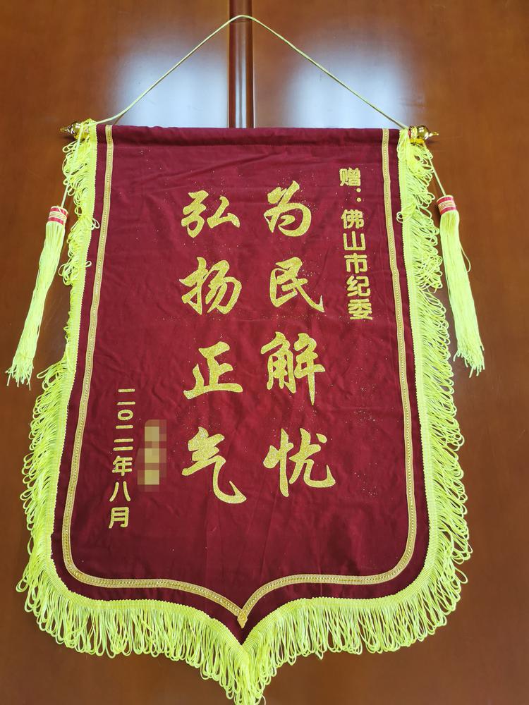 群眾寄來的錦旗。/佛山日報記者黃碧云攝
