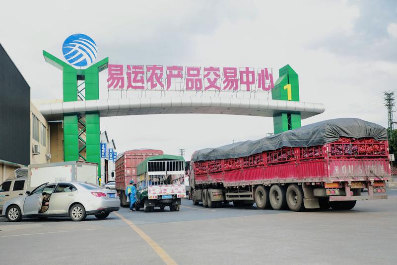 下午4點,易云農(nóng)產(chǎn)品交易中心門口已經(jīng)有不少滿載蔬菜的車輛在等候入場。/佛山日報記者劉乙丁攝