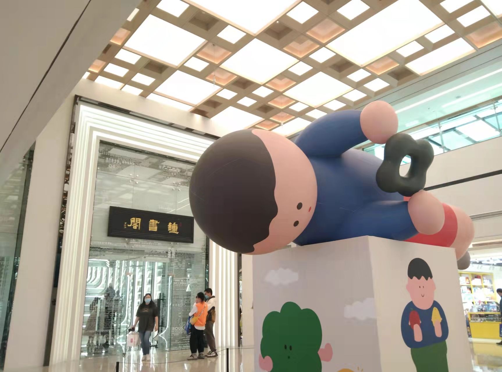 假如說先行書店是老字號“網(wǎng)紅書店”,那么鐘書閣屬于新生代“網(wǎng)紅書店”。書店位于南海萬科里,“五一”期間,動漫形象“大林男孩”的佛山首展在這個商業(yè)體內(nèi)舉行,鐘書閣外門口就安裝了“大林男孩”的大型裝置,吸引了許多市民在此處駐足、留影。