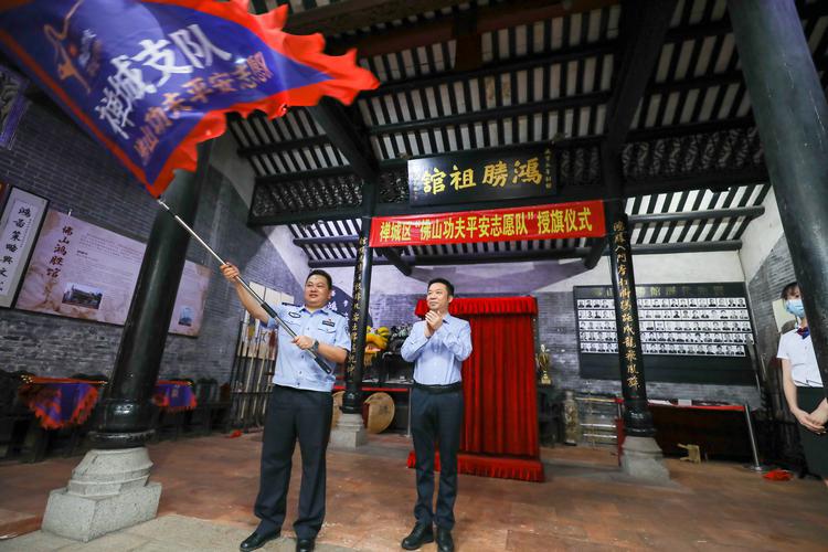 禪城區(qū)“佛山功夫平安志愿隊(duì)”包含12支分隊(duì),均由武館成員組成,涉及禪城武館50多間。接過(guò)“佛山功夫平安志愿隊(duì)”的分隊(duì)隊(duì)旗,佛山鴻勝紀(jì)念館的負(fù)責(zé)人專門將該旗幟懸掛在館內(nèi)顯眼位置。他表示,即日起,佛山鴻勝紀(jì)念館將與區(qū)內(nèi)眾多武館一道,不僅專注于傳習(xí)佛山傳統(tǒng)功夫文化,也將肩負(fù)起協(xié)同守護(hù)“平安禪城”的社會(huì)責(zé)任,如參與治安巡防、疫情防控等志愿服務(wù)工作。