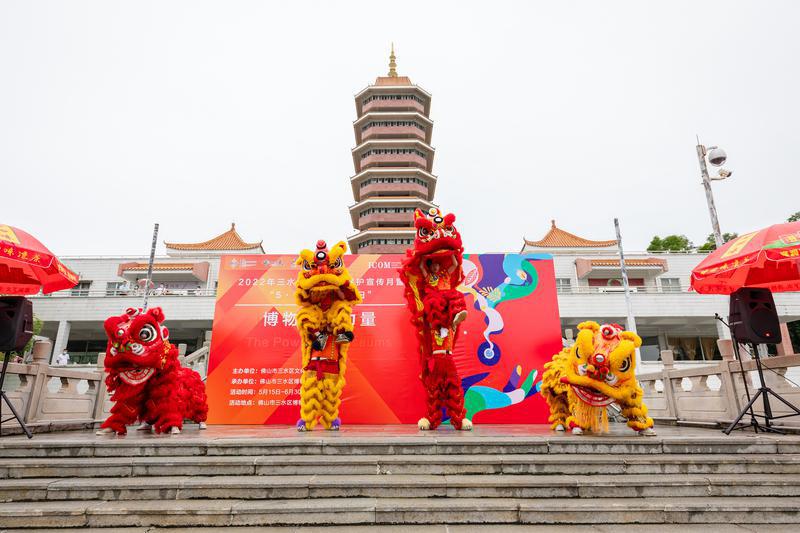 2022年5月15日,2022年三水區(qū)文化遺產(chǎn)保護(hù)宣傳月暨“5·18國(guó)際博物館日”活動(dòng)啟動(dòng)儀式舉行,現(xiàn)場(chǎng)正在進(jìn)行非遺項(xiàng)目暖場(chǎng)表演廣東醒獅。/佛山日?qǐng)?bào)記者王澍攝
