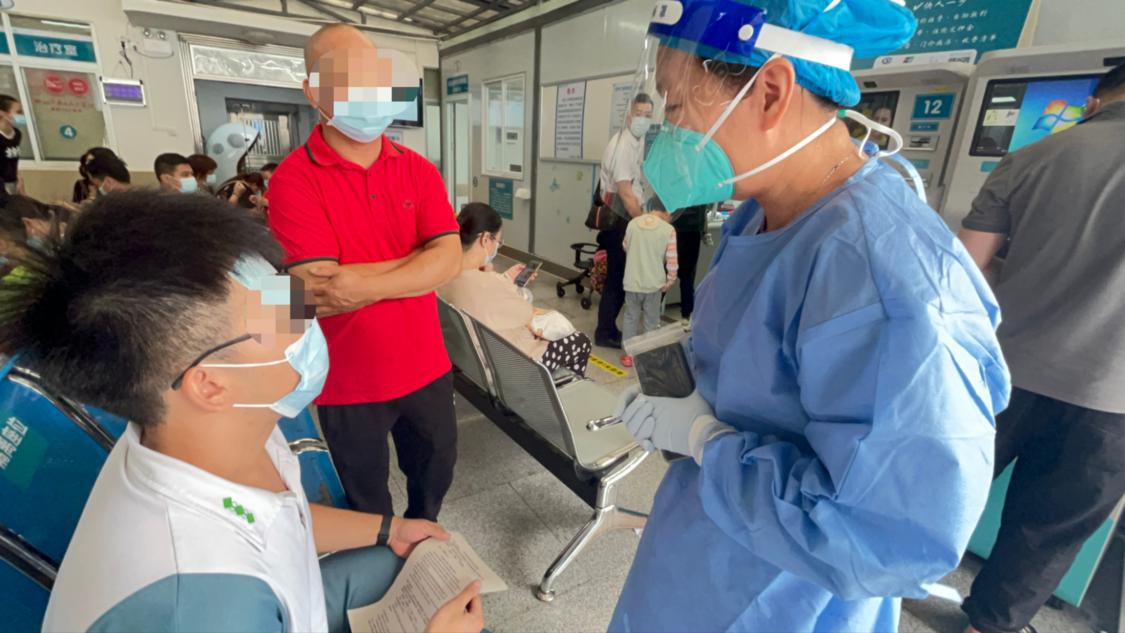 得知情況后,分診護士鐘金玲立即協(xié)助家長用手機掛號,并迅速引導考生來到核酸采樣室,開啟了一場護航高考的愛心接力。