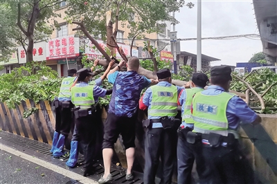 龍卷風(fēng)過后,有關(guān)部門工作人員進行道路清障工作。/通訊員李翠姍、黎昭映供圖